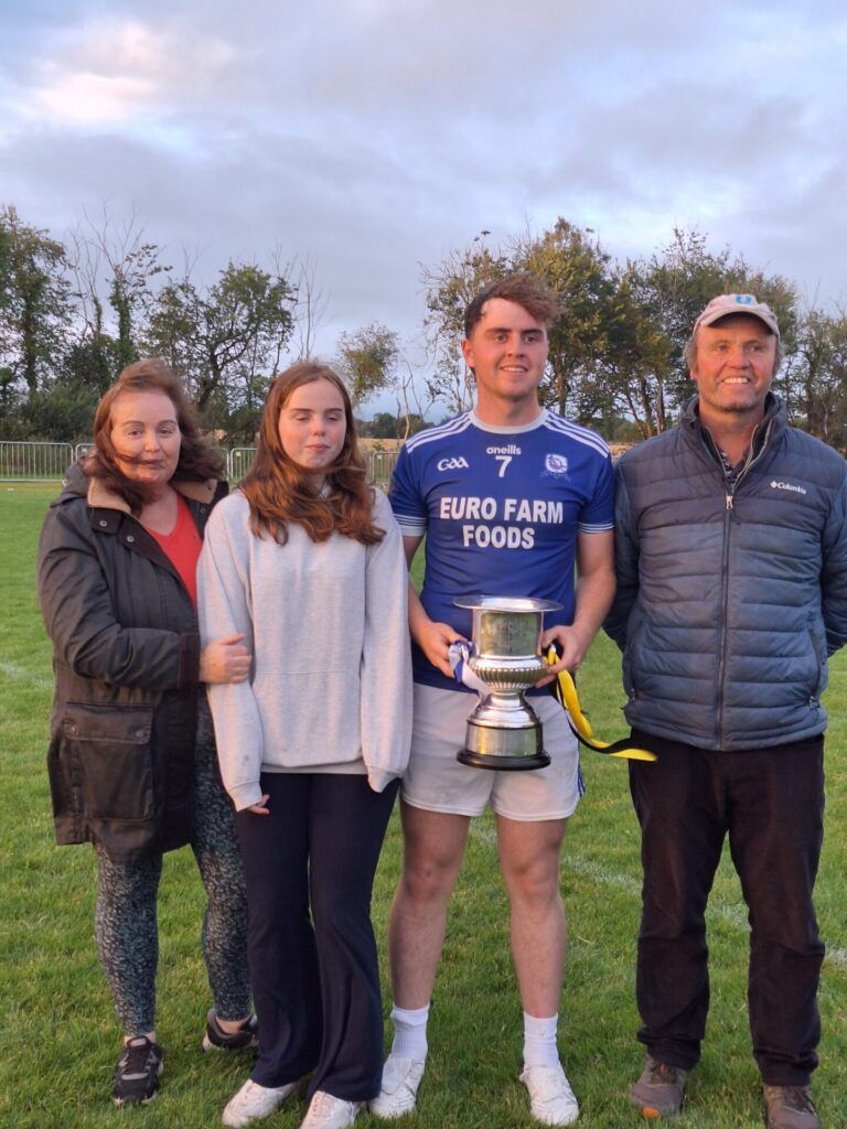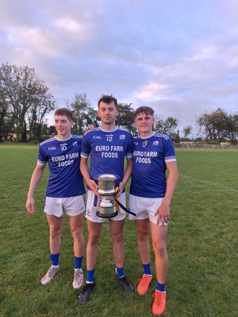 Skryne had excellent performances all over the pitch with Robert Gallagher and McGoldrick excellent in the middle of the park. As mentioned before, the defence were superb throughout. Up front the young guns Liam Donohoe, Cormac Pentony, Kian Reddy, Cian Donohoe, Charlie Swan, Andrew Canavan and Stephen Corry all posed a threat and ensured Skryne tagged on the scores that secured a momentus victory to bring the Jack Cummins Cup back to Fr.McManus Park !! This was truly a team effort and while some of the squad didn’t get a run out today, their contribution throughout the campaign played a big part in ensuring this trophy made it’s way back to the Blue Kings of Tara.
